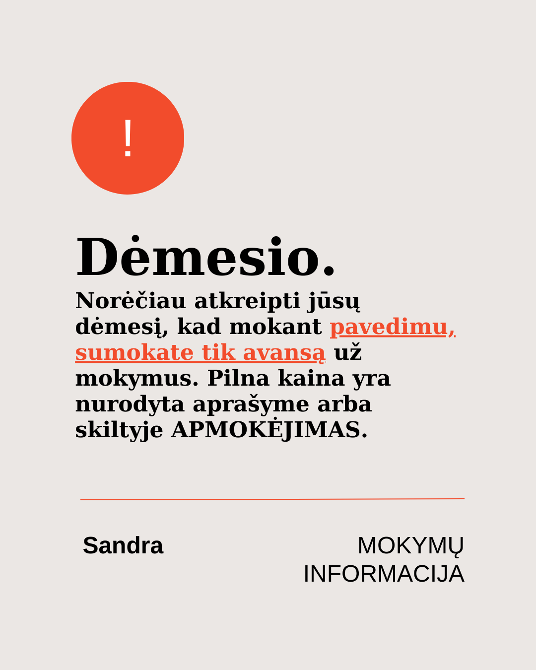 Norint pasinaudoti galimybe apmokėti dalimis prašome padaryti avansinį apmokėjimą (pavedimą).